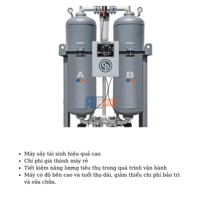 - Xả nước hiệu quả, đảm bảo không khí được khô hơn, giảm thiểu độ ẩm trong không khí và tăng hiệu suất hoạt động của máy sấy khí.