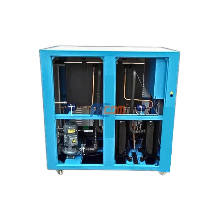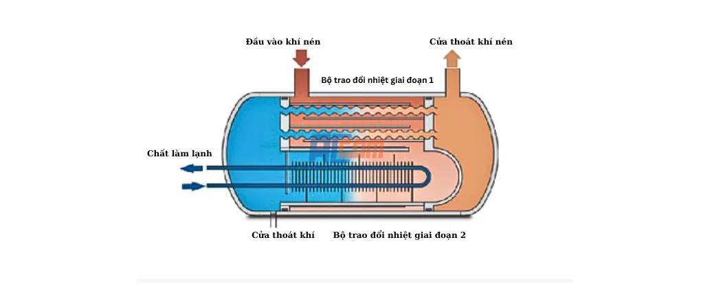 Máy sấy tác nhân lạnh làm mát bằng nước giúp loại bỏ hơi nước từ khí nén bằng cách làm lạnh khí đến cường độ dưới điểm sương, từ đó làm cho hơi nước trong khí nén bão hòa thành nước và được tách ra nén khí dòng. Điều này giúp cải thiện chất lượng nén khí và bảo vệ thiết bị nén khí khỏi bị ảnh hưởng bởi độ ẩm.